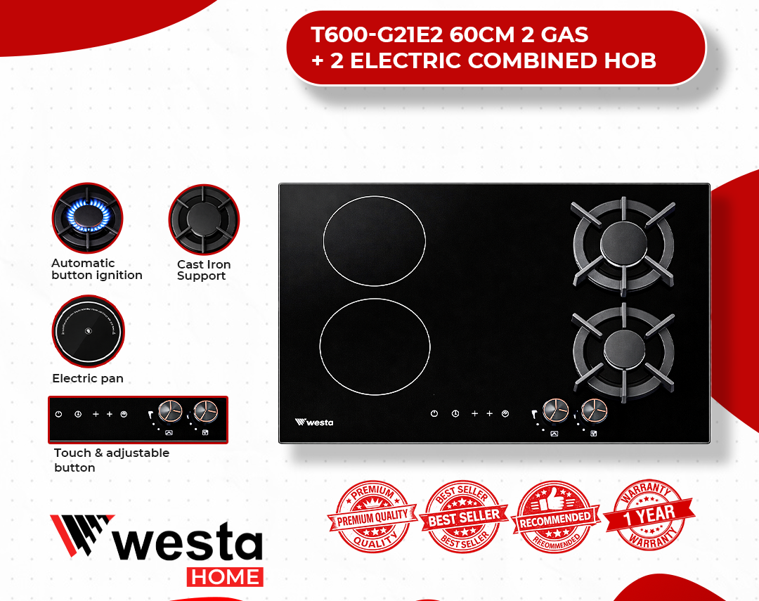 2 Gas + 2 Electric Combined Hob