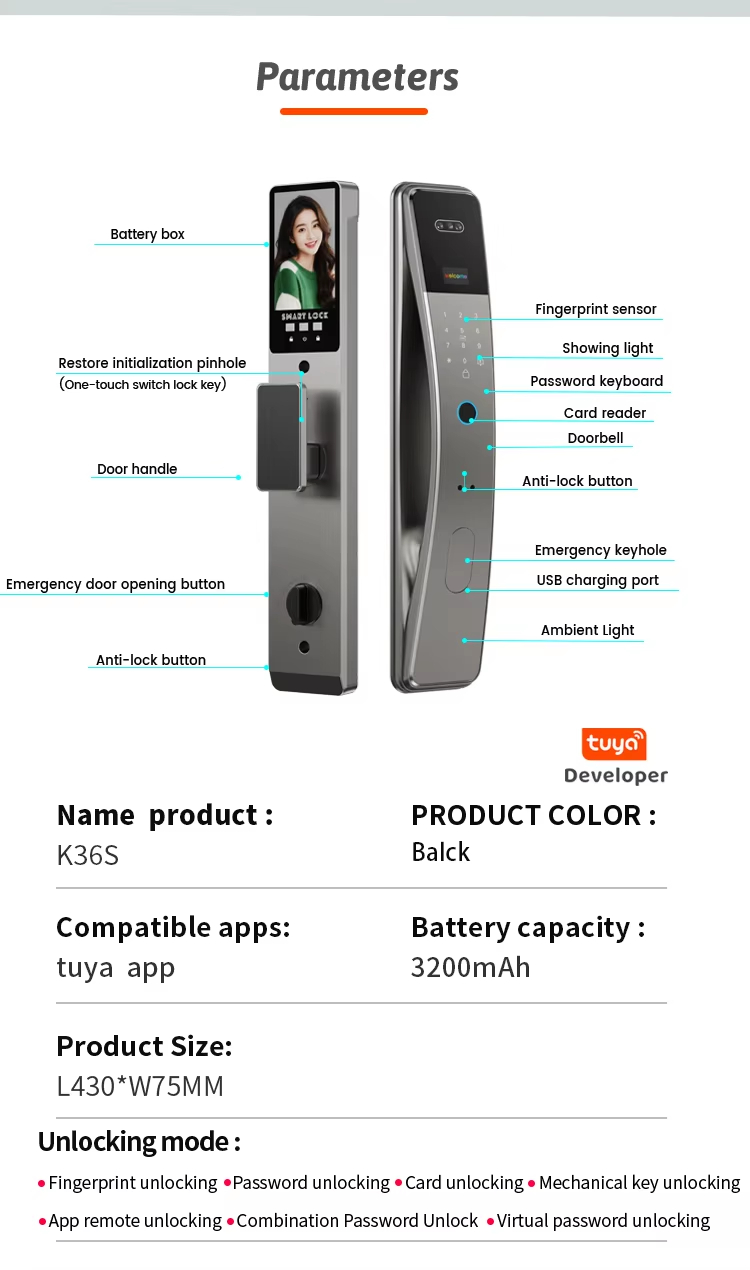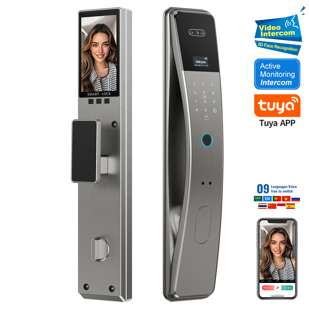 Waterproof Israel Home Tuya 3D Face Recognition Digital Lock Biometric Fingerprint Smart Door Lock Israel Lock Body Intercom