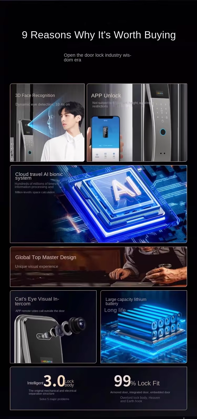 3d Face Recognition Smart Door Lock With Camera Fingerprint Security Automatic Smart Lock