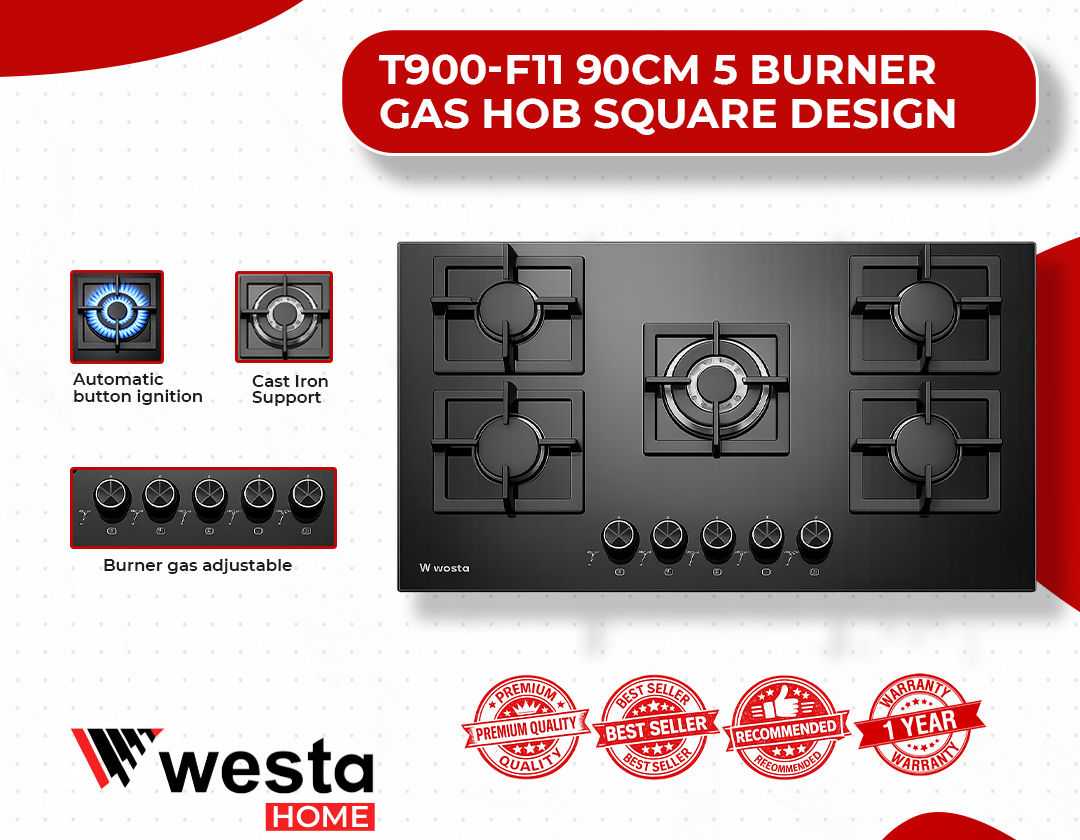 5 Burner Gas Hob Square Design