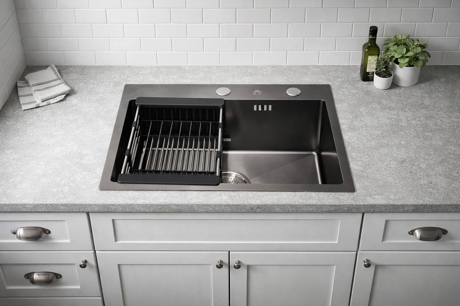 3.Accessories: Stainless steel inner bowl, Stainless steel drain basket, Drain pipe