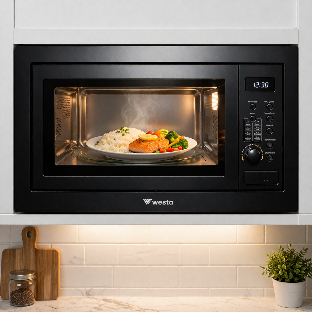 Capacity: 25 liters. Installation: Designed for built-in mounting. Features: Often includes grilling capabilities and digital controls.