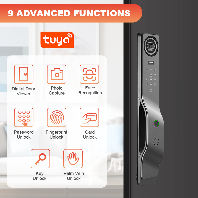 Tuya Wifi Smart Lock 3D Face Recognition Digital Lock
