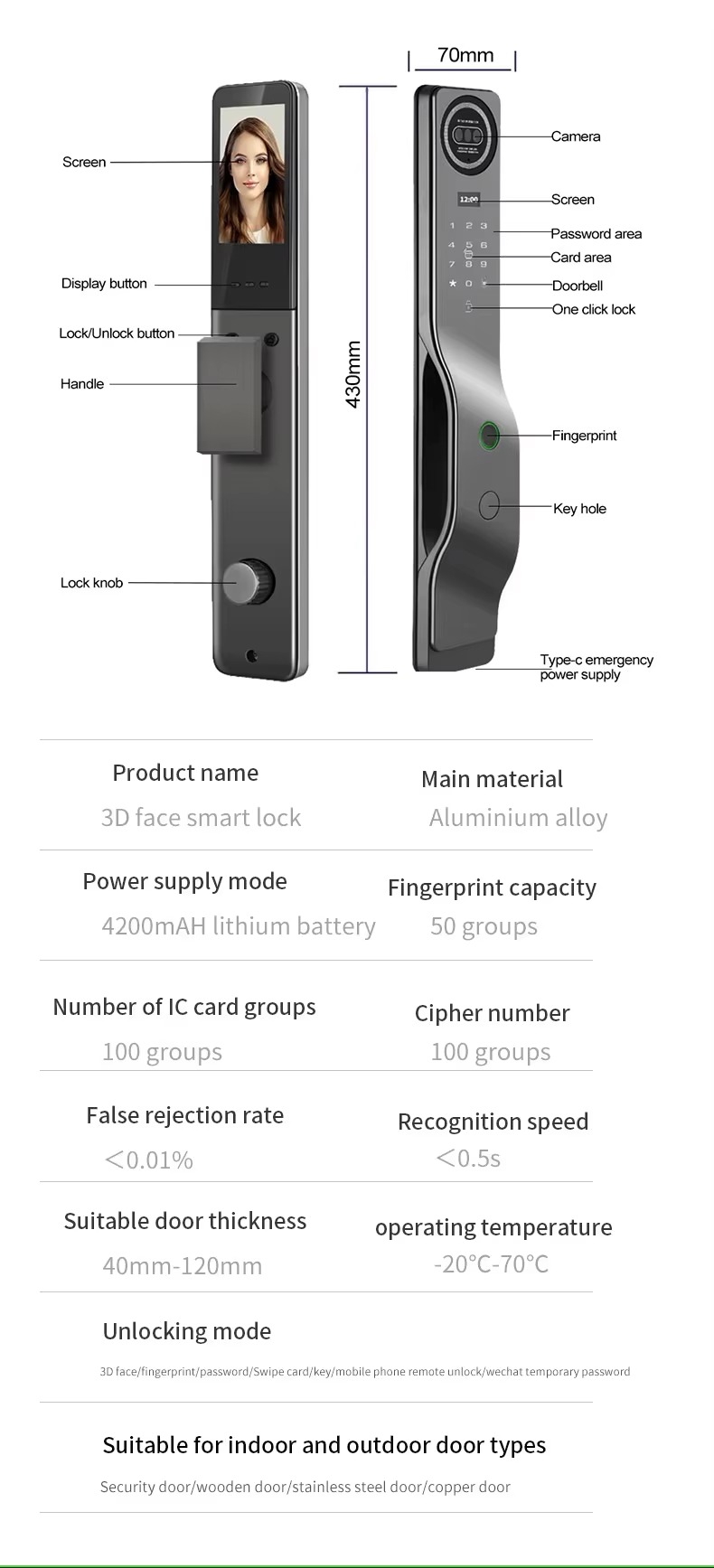 3d Face Recognition Smart Door Lock With Camera Fingerprint Security Automatic Smart Lock